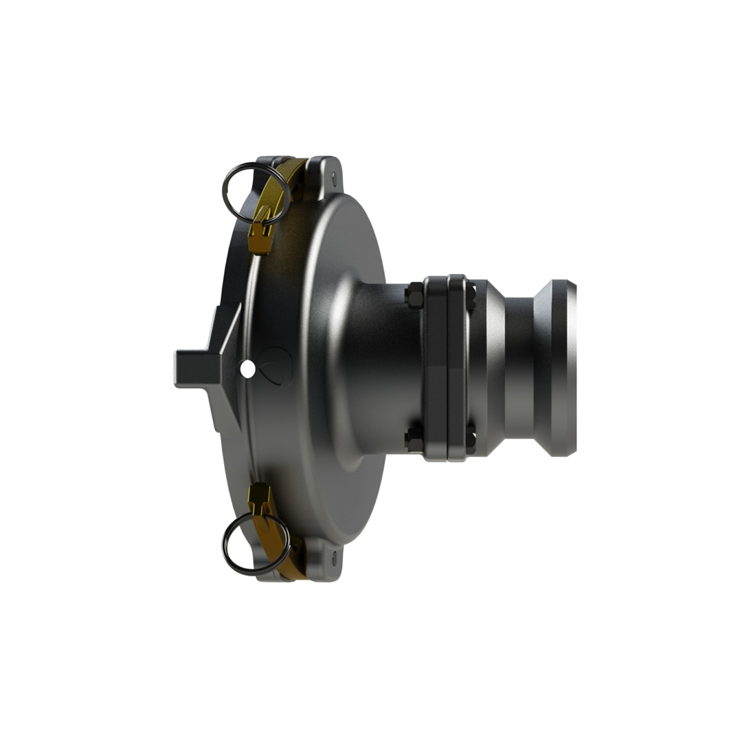 O Engate 6Fx3F Buna BI Com Visor é um equipamento auxiliar de adaptação do engate valvulado API com conexões de mangueiras de 4″. Tem a função de ligar as duas conexões e permitir a visualização da passagem de produto, durante a descarga.