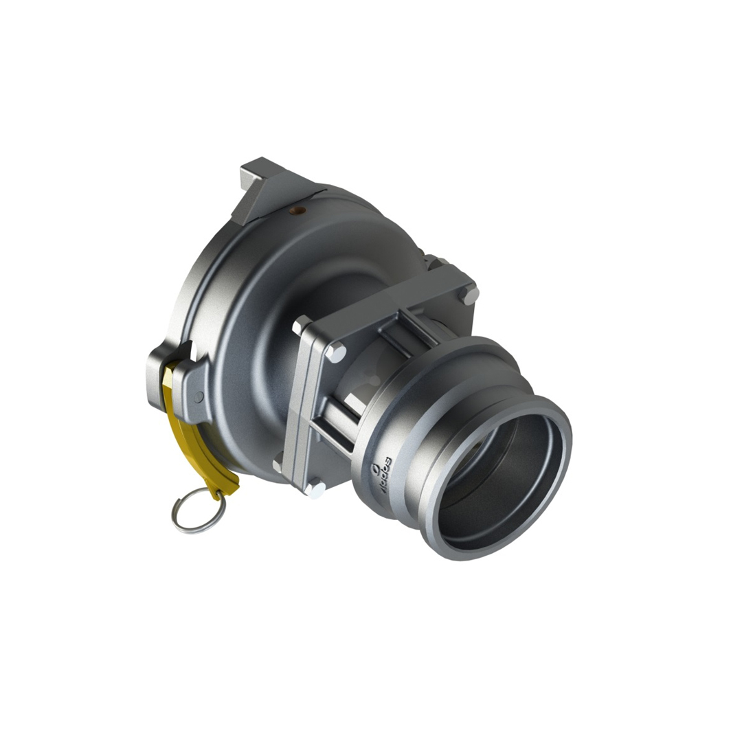 O Engate 6Fx4M Buna BI Com Visor é um equipamento auxiliar de adaptação do engate valvulado API com conexões de mangueiras de 4″. Tem a função de ligar as duas conexões e permitir a visualização da passagem de produto, durante a descarga.