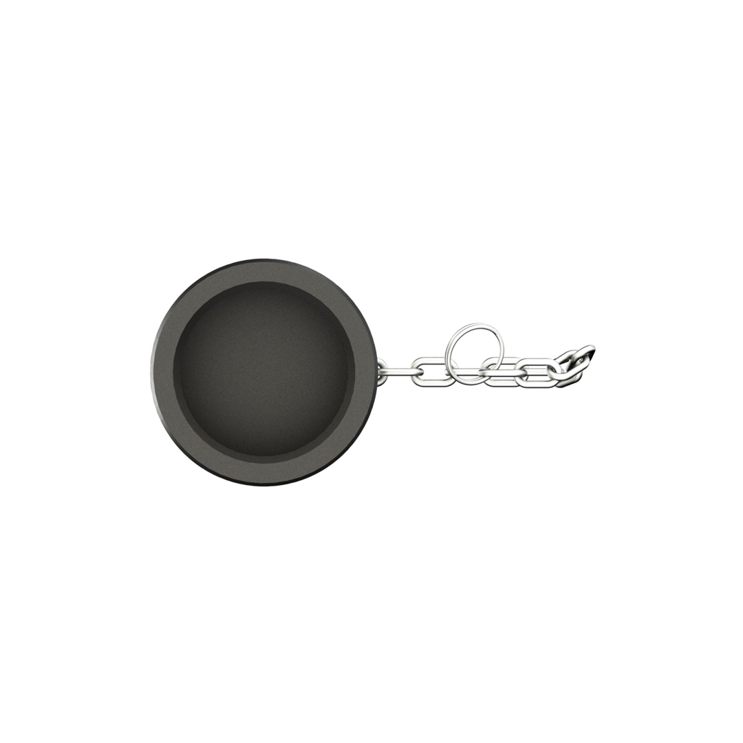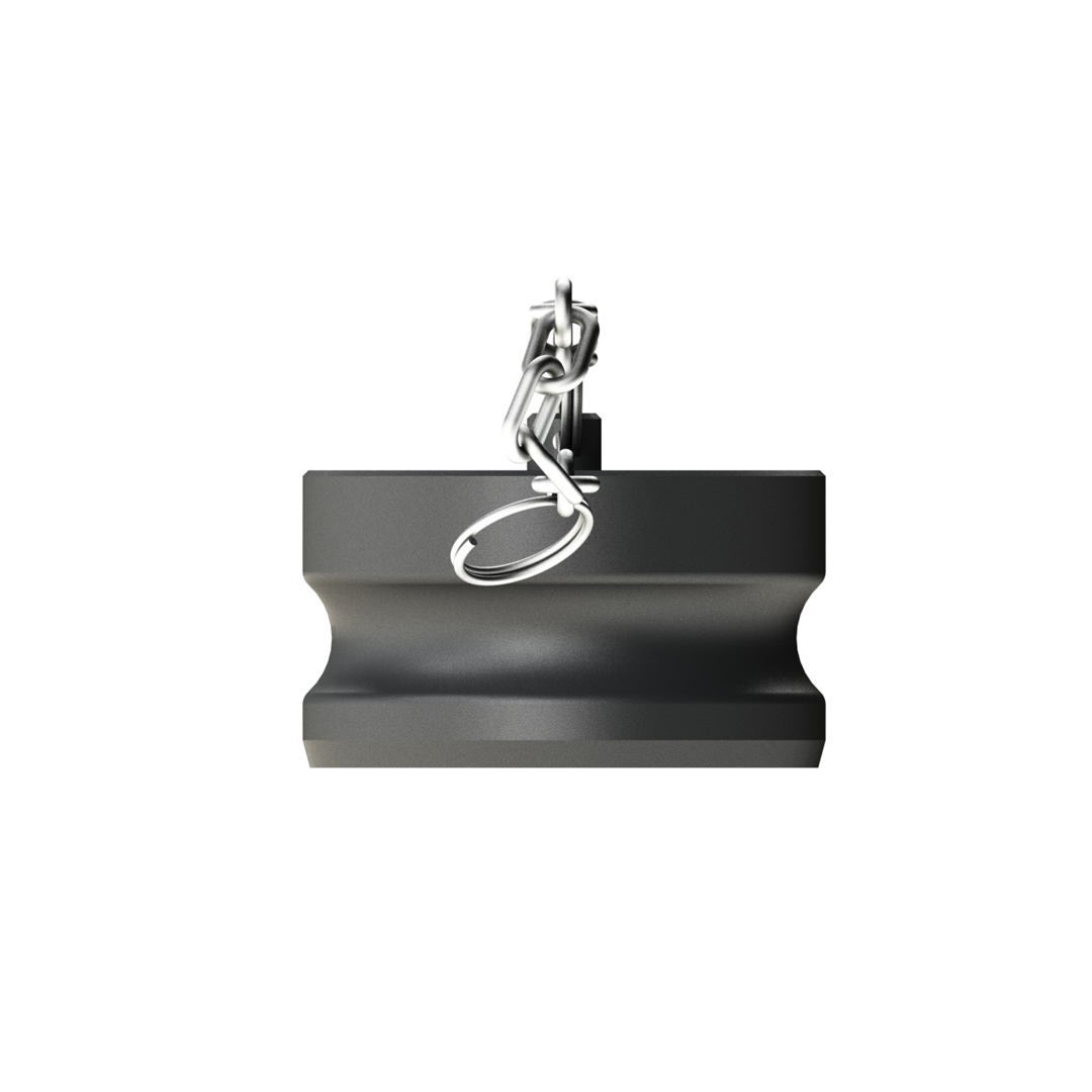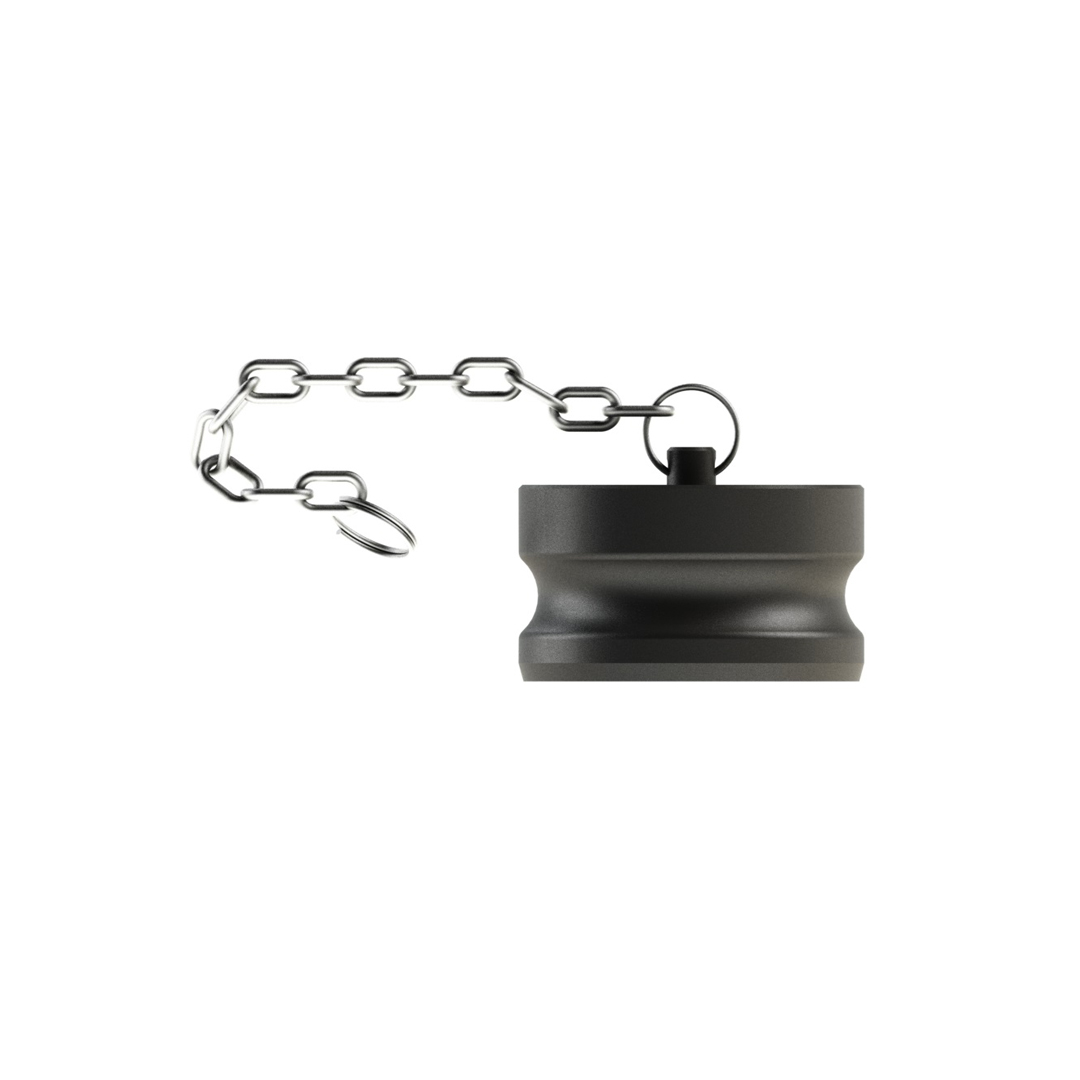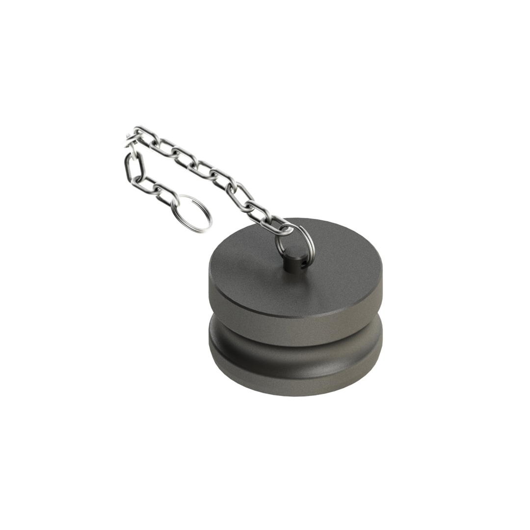A Tampa Macho 300DP Poli c/ Corrente é utilizada para proteger o engate do posto impedindo a entrada de contaminantes.